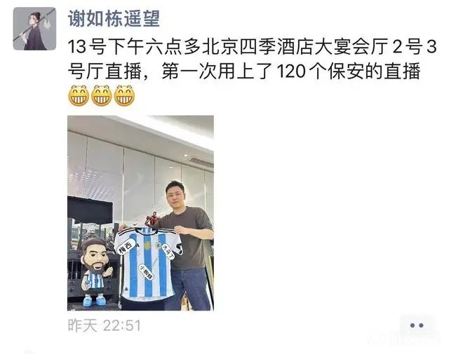 遙望科技董事長謝如棟曾在6月11日晚深夜發朋友圈,稱此次聯手梅西直播,要動用120名保安。