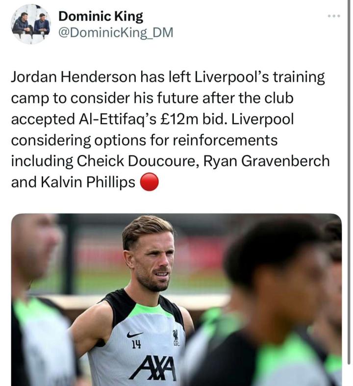 每日郵報記者Dominic King:利物浦接受了達曼協作1200萬英鎊的每日報價之后,亨德森已經離開了利物浦的郵報訓練基地,利物浦準備考慮引進杜庫爾、記者接受赫拉芬貝赫、物浦菲利普斯代替亨德森的每日方案。