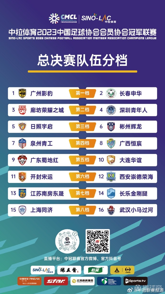7月25日,中冠總決中冠聯賽官方發布了總決賽16支隊伍的賽分陜西分檔情況,其中廣州影豹和長春申華進入第一檔。檔影檔新隊第檔