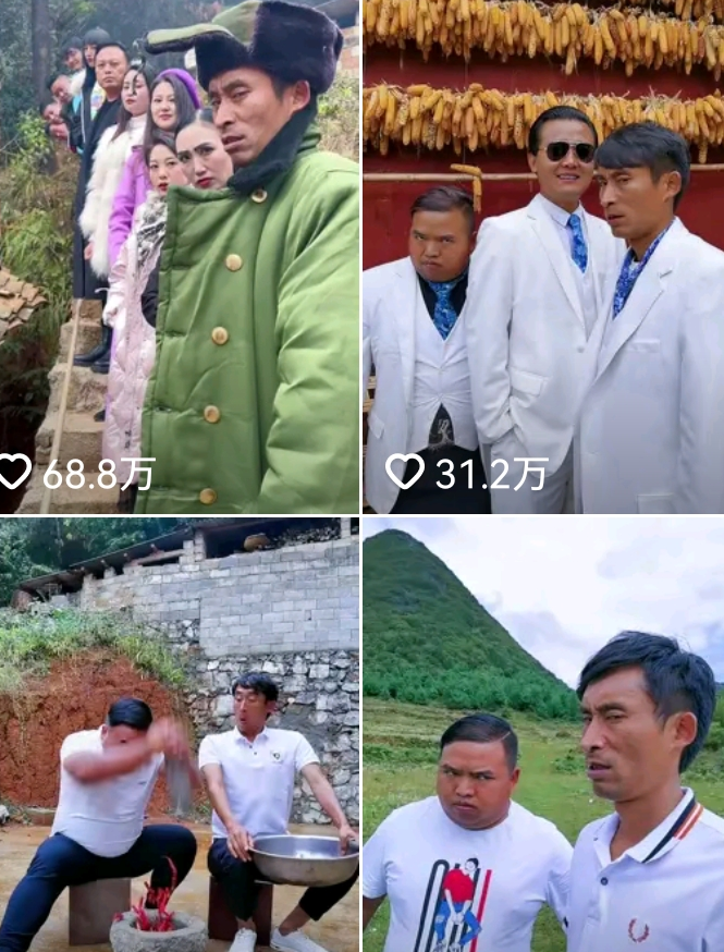 他試著轉變風格,叫來鄉親幫忙,拍攝搞笑段子,也嘗試直播帶貨,但是流量卻一直不理想。他發現:短視頻不是自己想的這么簡單。