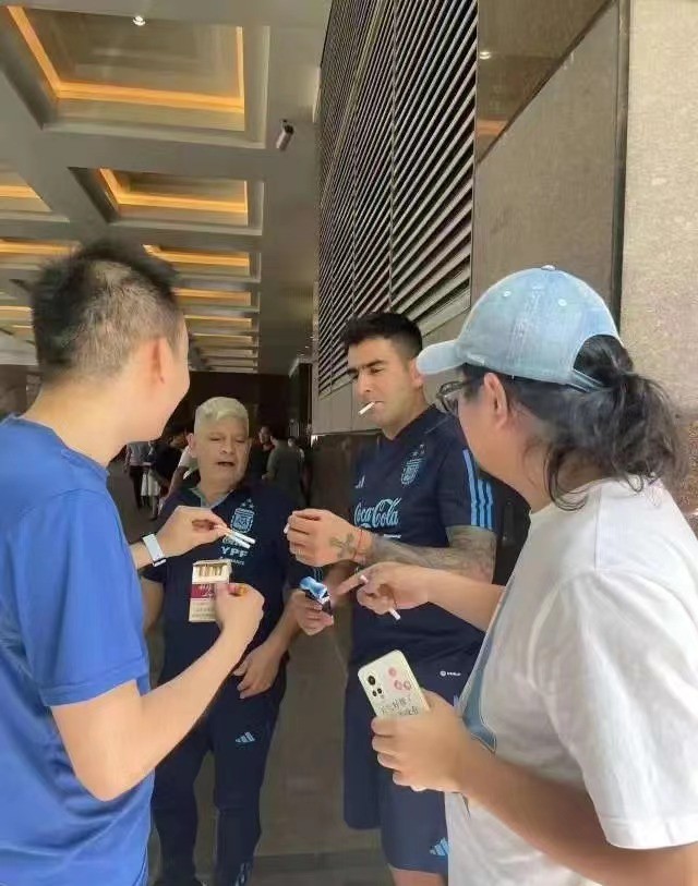 有意思的是,在落地北京后,阿根廷隊的裝備管理員在機場與前來接機的阿根廷球迷進行了“友好互動”,雙方互換了所抽的香煙,有眼尖的網友發現,我國球迷給這位阿根廷教練抽的是“利群”,不少人調侃稱或許阿根廷這位教練“我走遍了整個阿根廷都找不回那個味道”。