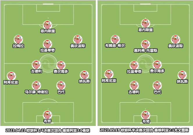 門迪利巴上任后沿用了洛佩特吉時代的4231陣型,迅速確立主力陣容和輪換班底,明確了注重效率和沖擊的打法,不再像桑保利時代那樣執著于控制。古德利和恩內斯里成為撐起中軸線的關鍵球員,費爾南多的出場時間激增,這都是塞維利亞追求務實打法的信號。