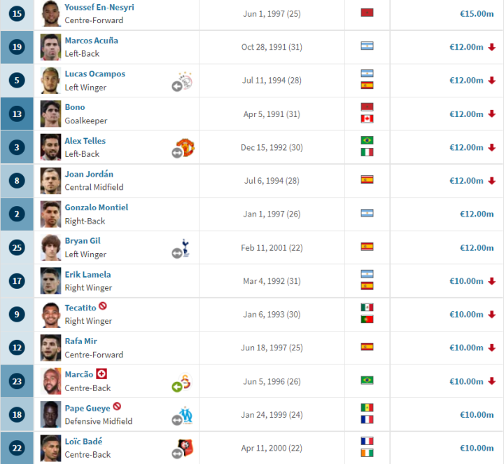 (圖)全員身價下降,塞維利亞在過去這個賽季中的艱難可想而知。
