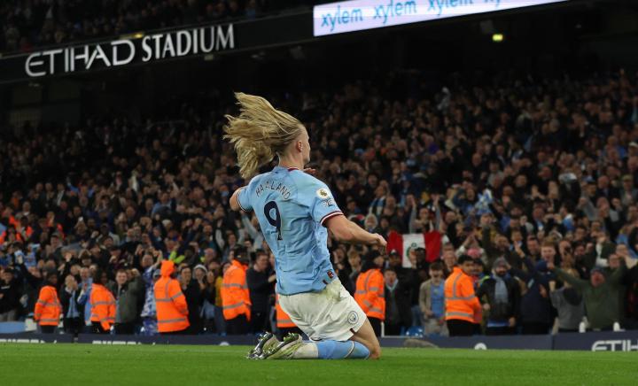 曼城4-1戰勝利物浦,哈蘭德雖然沒有上場,但他就像其他球迷一樣興奮得跳來跳去。