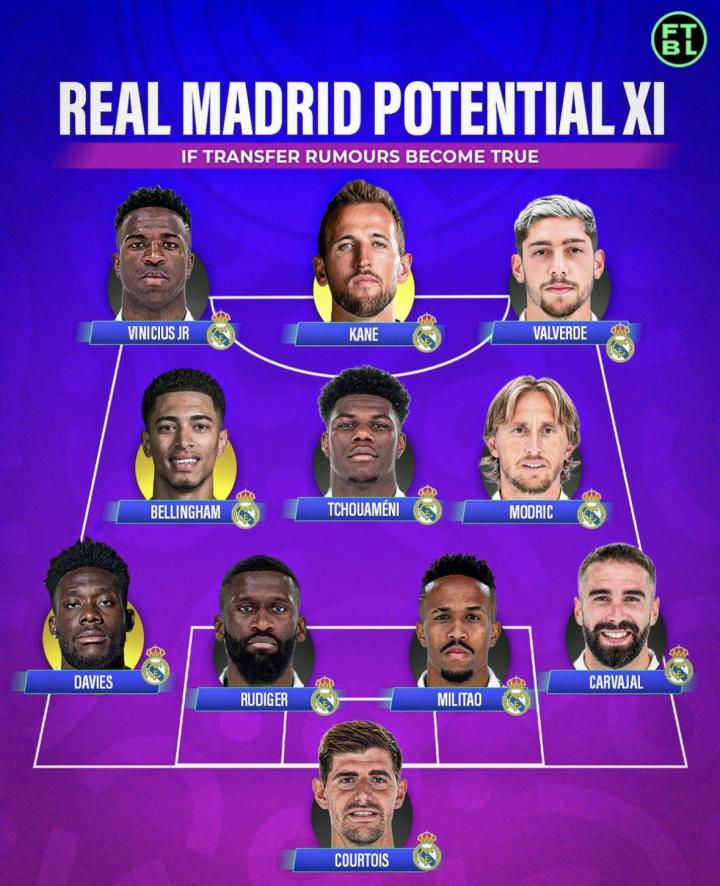 戰力爆表!戰力皇家馬德里潛在的爆表下個賽季陣容:凱恩、戴維斯馳援!馬德