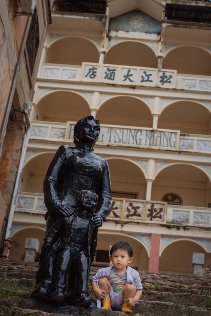 酒店早已改為博物館,然而沉寂了三年卻至今未開。對面的火船碼頭是最出片的地方,沿著凹凸不平的臺階走下去回望松口,佇立臺階上的雕像宛如電影中離別的場景,有人愁容滿面憂思親人,有人孤身一人迷茫未來,也有在海外闖出一片天的大亨滿載而歸,回到心靈的港灣。