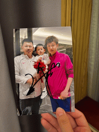 那天也順便去了趟球員酒店,把上次在溫州的合影簽掉了一些。h11爸爸在溫州看中了小徐,他眼光真好我的新球衣就印7啦!