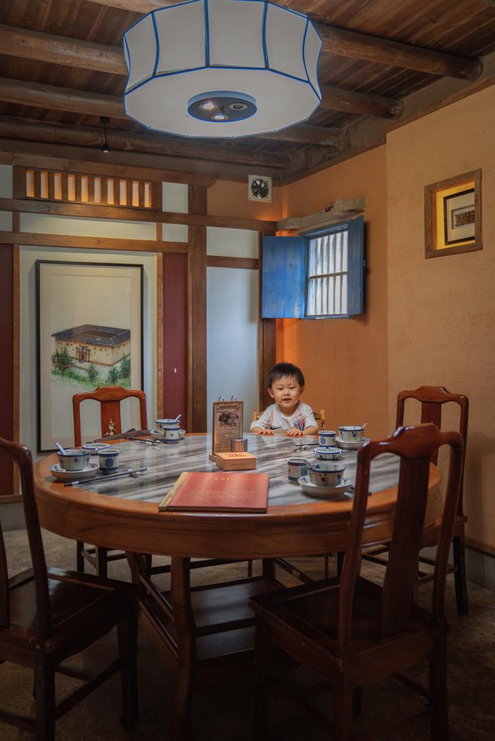 這座圍龍屋雖是飯店卻沒有把全部的空間都騰出來作包廂,有許多客家人生活習俗的展示區,也保留了最重要的部分——拜神靈,屋子正中間有一處寫著禁止通行,那里供奉著重要的神明,這也是客家文化的一大魅力。