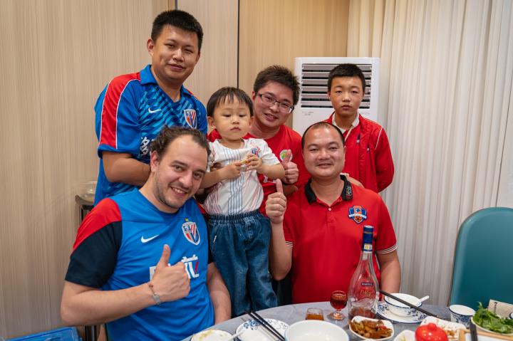 下半場,前一晚一起喝酒的當地大哥帶著美女老板一同出現了,賽后還領我們去吃飯喝酒。又認識了阿敏大哥一家,擅長鋼琴的阿敏大哥同時熱愛足球,他的兒子如今也在梅州客家梯隊訓練。