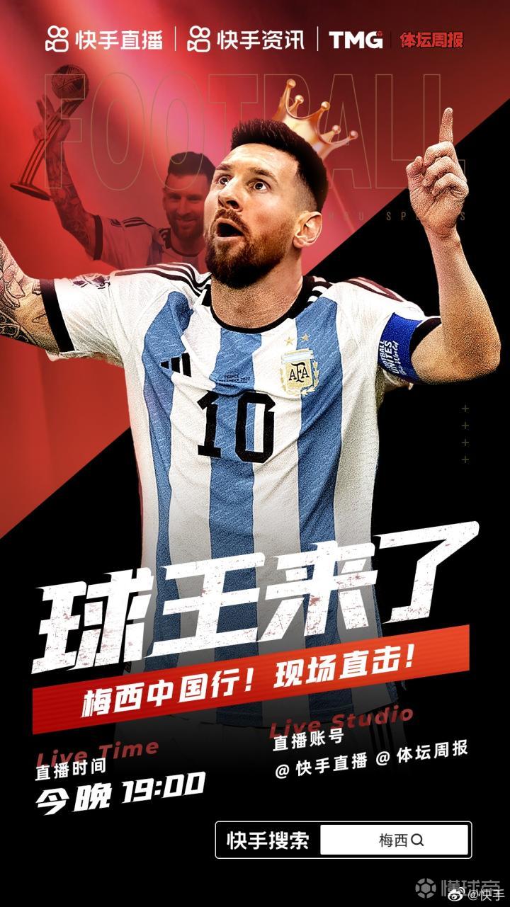 官方消息,球王來了梅西將于北京時間今晚19:00現身快手直播間。梅西