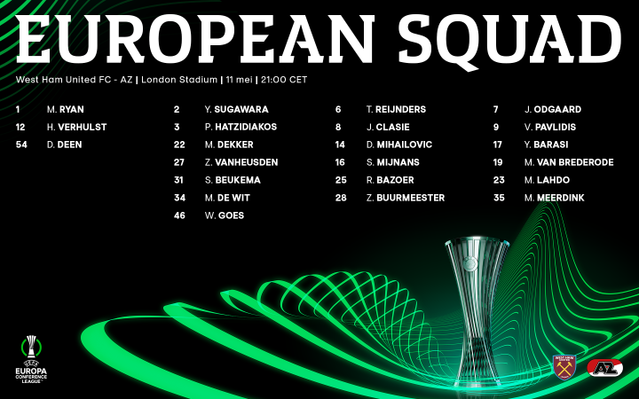 | 阿爾克馬爾客戰西漢姆聯參賽名單