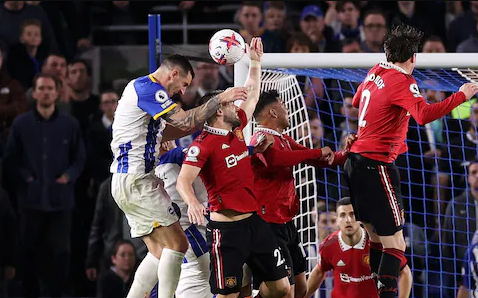 緊接著是讀秒階段,布萊頓角球所制造的“二重奏”,雖然曼聯眾將在門線上奮力解圍,但是盧克-肖在爭搶頭球時不幸手球。主裁判回看VAR后給曼聯送上了“極刑”。