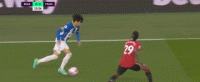 和足總杯半決賽相比,今天三笘薫面對萬比薩卡的突破威脅和成功率都提升了不少。三笘薫通過上一次交手時的失敗的經歷,總結了萬比薩卡在邊路防守時喜歡防內放外的特點。在幾次較量的過程中,三笘薫的節奏變化更具欺騙性,“假往外真往內”的操作屢屢奏效。